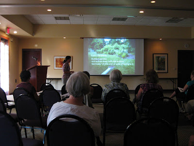 uently and offer a great view across the pond. I've viewed them from across the pond too and those colors certainly "pop"! The sound of the nearby "Dancing Waters" fountain adds to the setting as well. The picture directly above was taken last night at the Rain Garden talk. We had 23 attendees enjoy the talk by Chrissy Regester of UW-Walworth County Extension. She did a great job and I think inspired many, including me, to look in to creating a rain garden. Our next talk in this lecture series is on Ornamental Grasses by Nancy Nedveck from the Flower Factory. This talk will be on Wednesday, September 28th from 6 pm - 8 pm (free for RBG members, $5 for all others). This lecture series has gone very well with a total of 495 attendees for the first eight lectures (aver