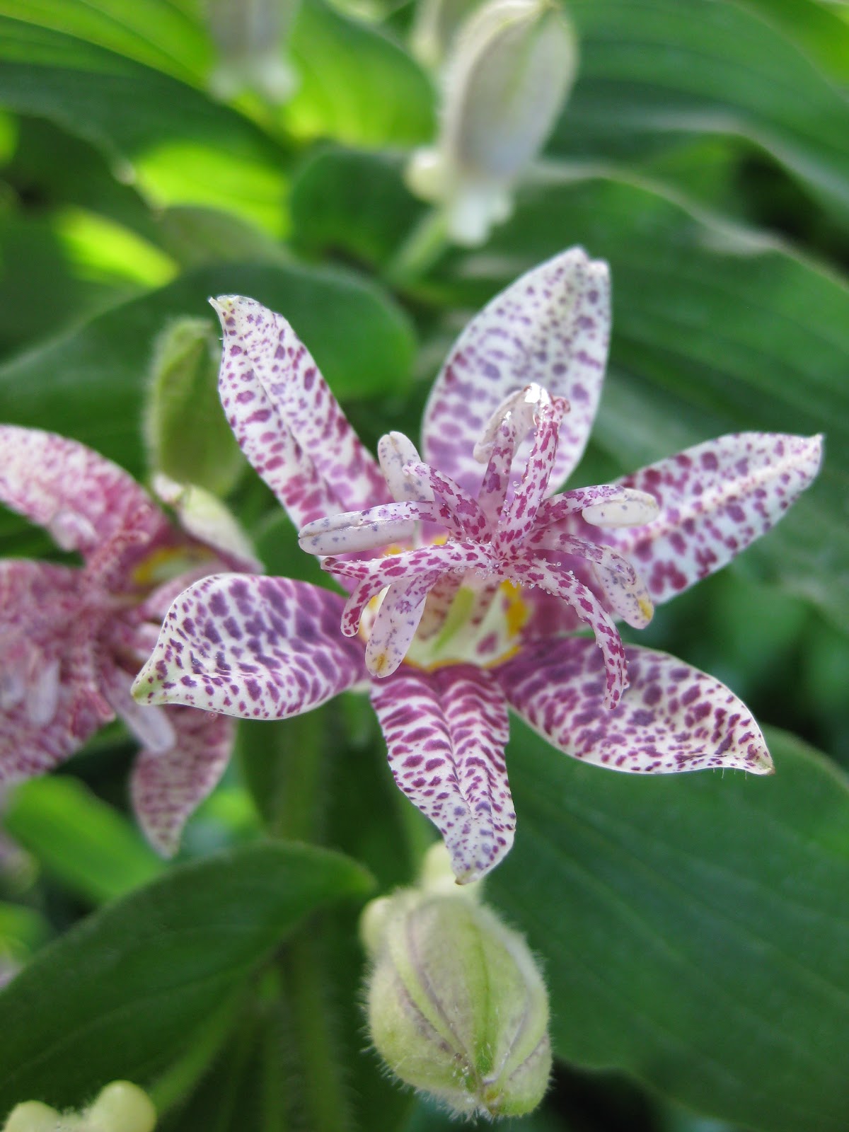 Despite the chilly start to the morning (38 degrees F), we jumped right in to the beginning of a beautiful, sunny day. I'm sure the grounds staff can appreciate the working conditions on this 65 degree F day that is 40 degrees cooler than those inferno-like summer days. The photos above were taken last night when we completed our walking tour of the Ornamental Edible & Compact Vegetable Collection. I'm not often in the gardens at 6 pm with my camera but it worked out last night. The top shot looks similar to a sweet shot taken by John Hutchinson, the winner of our photograpy contest that granted his winning submission the cover shot on our 2013 RBG calendar ($10 in our gift shop by the way!). I wanted to mention that my blog layouts will now follow this more simplified arrangement with "stacked photos" with interspersed text as I am having a horrible time figuring out the new BLOGGER protocols for including more inset photos. Photos and content wont change, it will just be a more primitive arrangement for now. Thanks to all that read the blog and please share with others. Over 200 people read the blog daily now! The original intent of the blog hasn't changed since I started it three years ago. It's meant to inform, educate and inspire our current and potential volunteers, members, visitors and other interested parties. Directly below is the 'Rozanne' perennial geranium (Geranium hybrida) which has been blooming sporadically since June. I like this geranium a lot (full sun or part shade) and it benefits from being cut back severely in mid-summer to encourage fresh growth and another solid flush of 2" diamter, violet/blue blooms. The next photo down is the 'Dark Beauty' toadlily (Tricyrtis formosana). This 3-4' tall perennial does well in part sun and is a strong bloomer well until the hardest frost. This specimen is in the woodland walk. Take a close look at those crazy blooms! The third photo down shows the 'Red Cauli' stonecrop (Sedum telephium) which is an award-winning sedum (Royal Horticultural Society in the UK) with bluish foliage and smaller flower clusters (like cauliflower florets) that age from pink to a bright red.