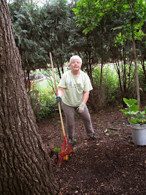 Our reliable Tuesday Corp of Volunteers showed up today. Above is Ron K. who continues to tidy and plant in the woodland walk garden. I said I'd mention in the blog that his garbage can in this photo is filled with 200 lbs of debris and he suggested I mention bowling balls....Regardless, it doesn't take Ron long to fill one of these! Kay (directly below) worked her weeding and tidying magic along the back of the shade garden along the sunken garden hedges. These areas have been relatively neglected and look great now. Eva and Kathy (next photo down) continued their weeding onslaught in the Potter Daylily Collection and continue to pull out lots of weedy grasses and thistles. The third photo down shows Cookie (left) and Resa out in the gardens. The ladies finished tidying up the North point garden, their assigned garden, and moved on to the alpine garden which really needed the attention. The fourth photo down shows Mary and Roy in the Jungle Garden. When they weren't leaning on their tools, they were a weeding whirlwind in the shade garden, Jungle Garden and beyond! The fifth photo down shows Vicki weeding along the periphery of the Nancy Yahr Memorial Children's Garden. It's amazing how quickly weeds will re-infiltrate an area and we're combing the entire garden now for the latest generation of weeds! Mary Kay put in significant time organizing the reference library and Bill O. was out for mowing duties. Urban came in to prune a weeping willow (Salix) near the shoreline and Maury ran some errands for us. We also saw Dr. Yahr, Bev D., Art H. and many others today... Further below are more plant photos from today.