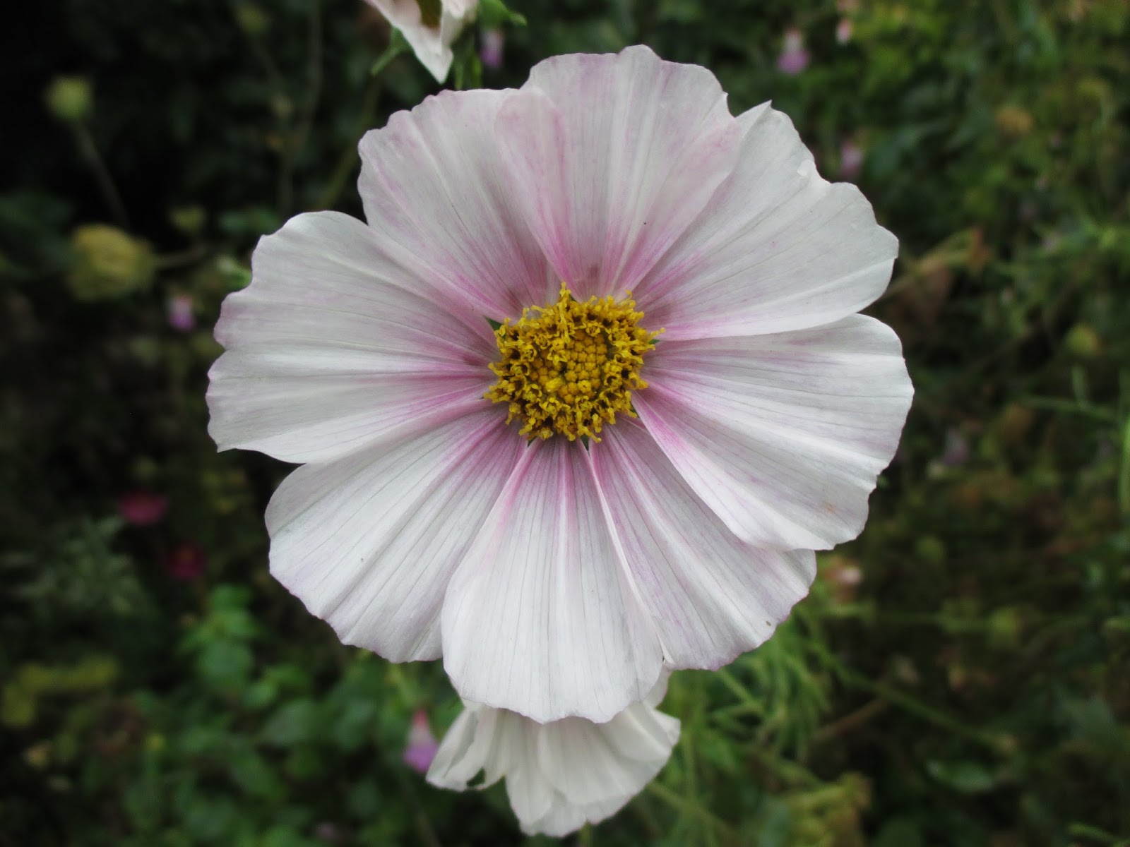 cosmos (Cosmos bipinnatus) still going strong (above) and grape (Vitis sp.) leaves are starting to get tinged with fall color (below)