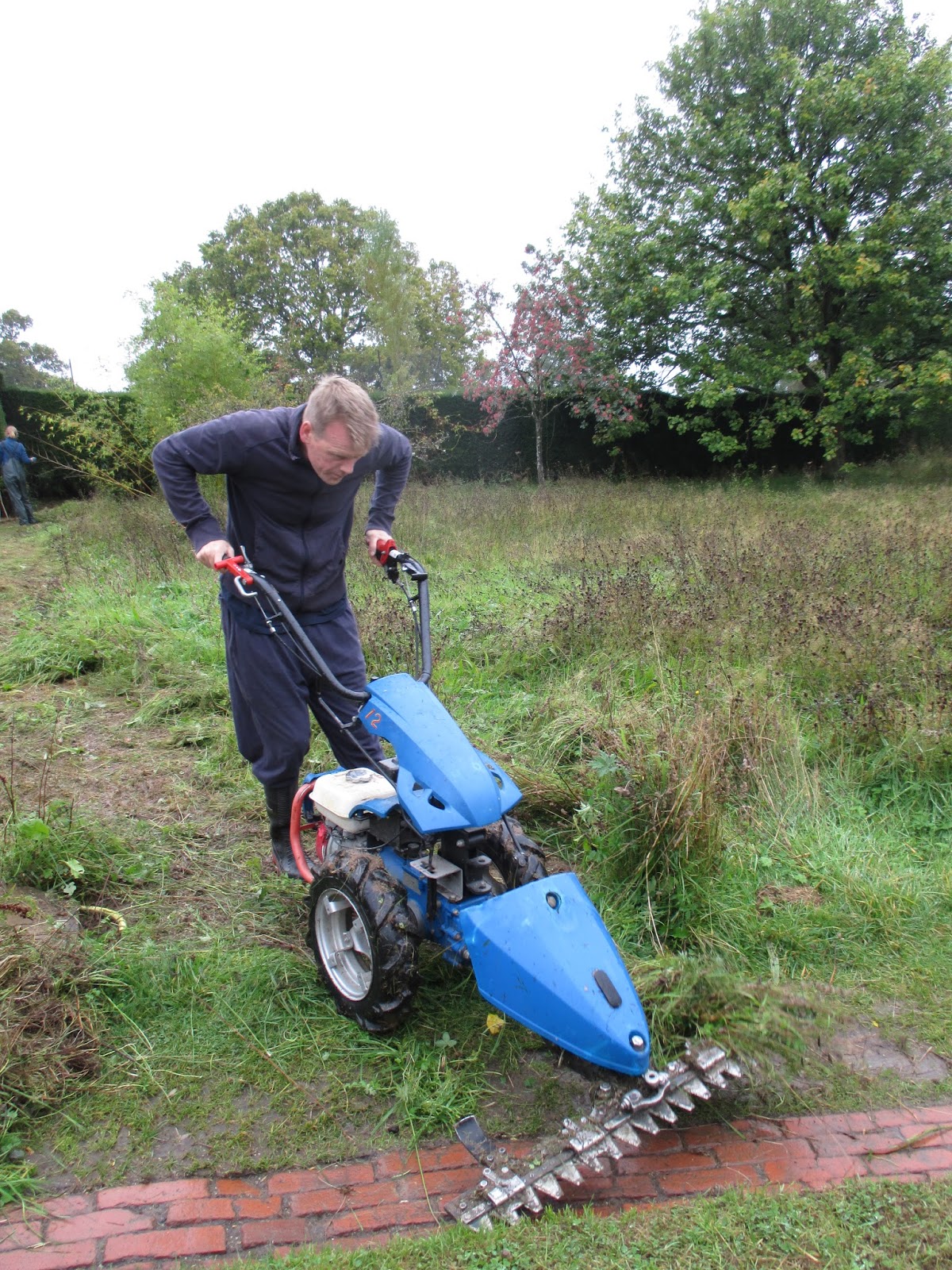 Above and below are Rich cutting down one of the meadows today. For Americans, if you know Willie MacDougal (the groundskeeper on the Simpsons), Rich's Scottish accent is just as strong. He's a neat guy with a great sense of humor and will wear shorts and a t-shirt as long as it's over 50 degrees F...