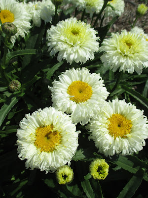 I've always been a fan of Shasta daisies (Leucanthemum x superbum) which have such cheery flowers over a good 10 weeks or so in summer. Pure white isn't used enough in the summer garden and Shasta daisies are solid performers that are simply beautiful. This plant was developed by Luther Burbank (see article below) who had an amazing life in horticulture/agriculture that warrants more examination and appreciation. When I first started to garden, the old variety 'Alaska' was the standard offering and did well with clear white blossoms on a 3' tall plant The variety 'Becky' seen above really increased the popularity of Shasta daisies when it was named Perennial Plant of the Year in 2003 by the Perennial Plant Association. 'Becky' can get close to 4' tall and is known for heavy flower production on sturdy stems. While most selections are in the 2' - 3' range, there are taller varieties and compact varieties around 12" or so. Shasta daisies prefer full sun but can tolerate part sun. Moist, well-drained soils are ideal and consider removing spent blooms (deadheading) to encourage an extended period of bloom. There are occasional insect and disease problems with Shasta daisies and they can re-seed in open soils quite readily. For a clean, white daisy in summer though...they can't be beat. Modern breeding is creating not only more flower forms (double forms, frills, etc.) but yellow varieties are becoming of more interest. Some yellow varieties will age to a white although some of the newest yellow selections maintain a yellow/cream appearance even on older flowers. The images in this blog (all mine) are just a very small portion of what is available out there. The article below was taken from the two online sources referenced at the bottom. Very interesting....