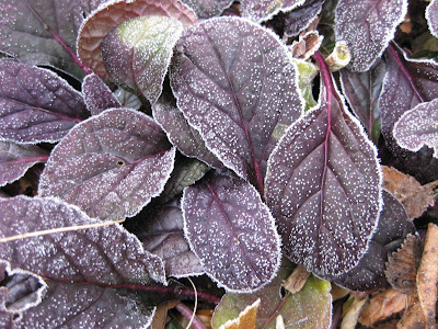 Ajuga reptans 'Chocolate Truffles' (above and with frost below)