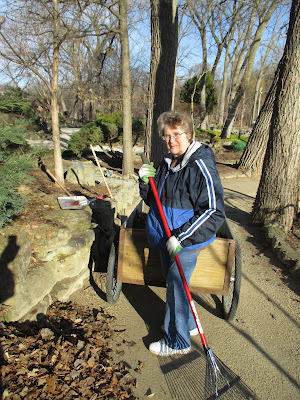 Lloyd leaning on a broom (he's mastered leaning on a shovel)