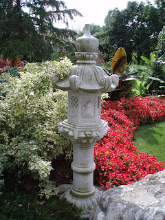 What the heck is the picture above you may ask? I know, I usually start with a pretty flower pictures but this image is just as beautiful. This is our current project of replenishing the dry gravel sea in the Japanese garden. In the background is the new gravel that we're spreading over the filter fabric (w