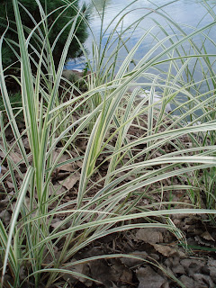 Miscanthus sinensis 'Dixieland') has a nice, clean variegation on narrow foliage. The arching form is nice but should be accounted for when you space other plants around a grass like this. The ornamental grasse