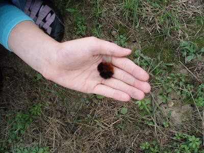 Pyrrhartica isabella) that my daughter found this weekend. Folklore holds that the severity of winter is related to the width of the brown center band. A wide band means a mild winter and a narrow band means a tough winter. This myth has been proven to have no value but I like to think the one we found (with a wide band) means a milder winter than last year!