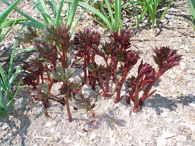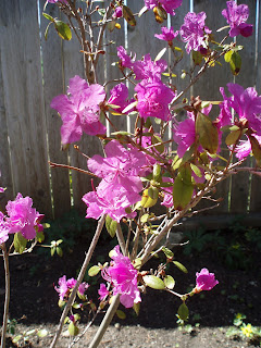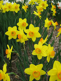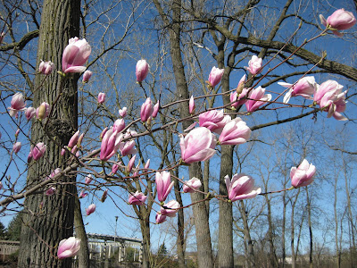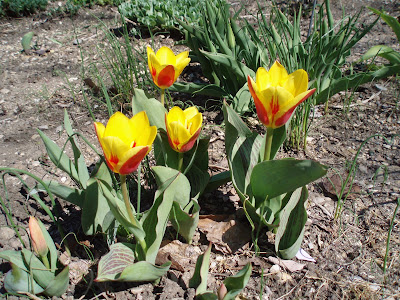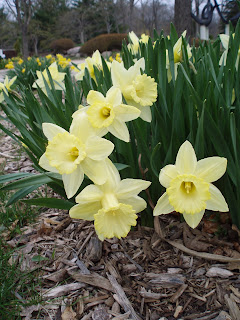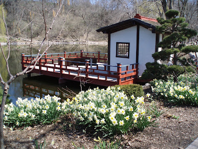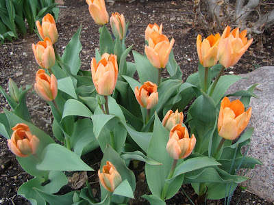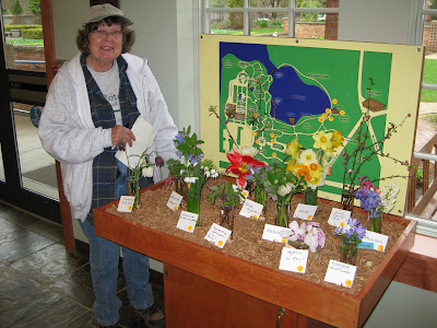 of PJM rhododendron in our Japanese garden. I've seen lots of nice specimens around town and contrary to what many people think, this plant likes more sun than shade. It is very particular about soil and drainage. The Bower City Garden Club (Janesville) hosted their annual luncheon over at the Parker Education Center today and it looked like a large crowd based on the packed parking lot. This group volunteers here and has been very generous with supporting our collections here at the gardens. I was worried that our tulips wouldn't be blooming out