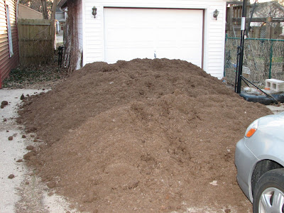 Another great Grumpy day with Dick P., Dick H., Rollie and crew hauling back all of our terrace furniture and umbrellas from storage. Gary and Charlie spread shredded bark in the rose garden while Del and Ron spread mushroom compost over some of our annual beds. Dave and Vern worked on carpentry while Bob T. worked his "air edge magic" by tidying up edges of beds along turf. Maury helped in many capacities and continued to prime some of our obelisks before paint