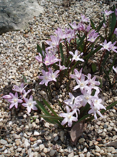 I'm looking at a huge pile of shredded bark and mushroom compost that we'll start to use to mulch select areas. We like to spread a 1" layer of the compost around emerging perennials and will use the shredded bark around trees, shrubs and other areas to deter weeds and maintain more moisture. Previously mulched areas with bark will receive a fresh 1" while new areas get 3-4". Always be sure to taper mulch away from the bases of all plants. I'm not a big fan of "ornamental rock" mulches (we have none here) as they don't break down (for the most part) and while looking neat and clean for the first couple of years, will eventually be infiltrated by weeds without frequent herbicide applications. See below for the extreme in rock mulching (not far from my house...) Too much!?