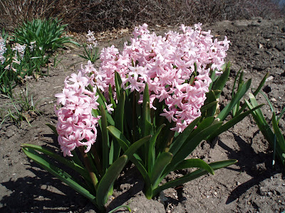 Pulsatilla vulgaris) in our English cottage garden today. I love the unfurling blooms of this early perennial and once done blooming, the seed heads are wispy and showy as well. We have some pink varieties in the alpine garden as well. It wasn't hard to run in to color today as seen with pictures from today (more hyacinths below).