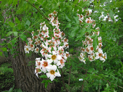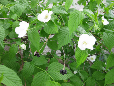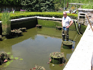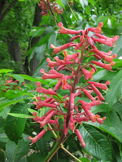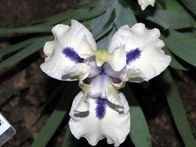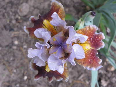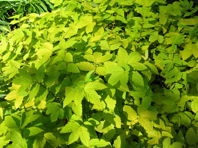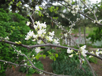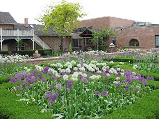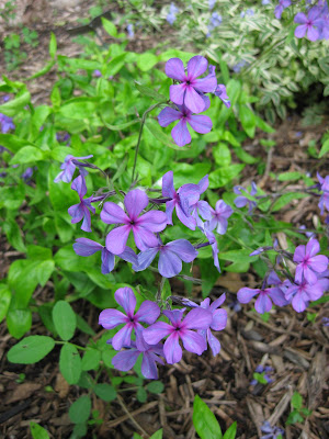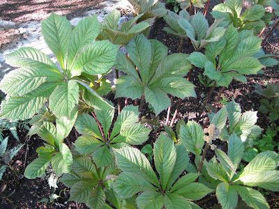 The moss above (note spore structures) is loving the weather today with mist, drizzle and cool temperatures. We're happy for the moisture though, even it means a lost day of planting. We are poised and ready for days like this with a multitude of duties that we often leave for rainy days. Terry and I ran to two nurseries for plants and once we got back, Marv and Terry headed back out for more. Larry worked on equipment maintenance while Little Jerry sharpened tools. Marv was working on hauling cocoa bean mulch and weeding in the fern & moss garden before being recruited for a plant run. Marianne and Jenny have been working on matching plant labels with our plants in the yard. It is so nice to plant something in the gardens and have the label right in hand. This is time well spent although Marianne also did a great job cleaning and tidying in the Horticulture Center. Dr. Gredler worked on mowing and signs while we had a couple volunteers swing in but not head out in to the damp gardens. Nice shot of the foliage of 'Tiramasu' coral bells (