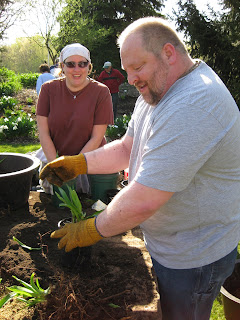 Another great Grumpy turnout and major productivity. Most of the guys spread shredded bark mulch around our daylily collection. This past Saturday, we had our daylily division workday and had over 50 volunteers turnout to create over 2,500 divisions (see below). We were happy to have the donor of the collection (and daylily expert), Bill Potter, show up and help out. We replanted a small portion of the original variety and now have them mulched. The Grumpies also hauled compost, wood chips, accomplished carpentry tasks and in general, everyone worked wonderful