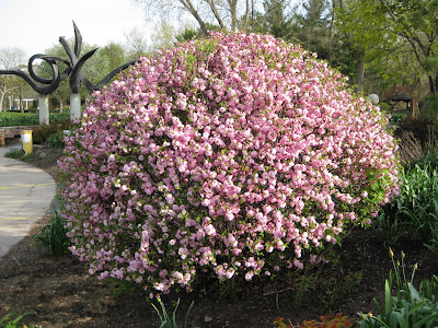 erennials in the English cottage garden (foxglove, hollyhock, delphinium, etc.) and will be working on her moss island that was decimated by wildlife. I did odds and ends and was able to spray some herbicide as we're hoping to avert the impending flush of weeds! See below for the double-flowering plum (