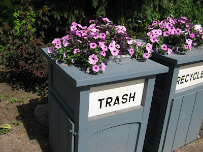 Terry and Janice worked on pushmowing among other activities like watering and hauling plants in preparation for our work day tomorrow morning. Dr. Gredler did his mowing and was photographed by the Janesville Gazette because of his recent accolade of becoming Volunteer of the Year thru the Helping Hand Program of United Way. This is for his service at Rotary Gardens and his volunteer commitment here. I hope it doesn't go to his head... Bill was here cleaning up and tidying and overall, we had a great day and were able to accomplish all that we set out to do. We've had a lot of interest in the iris collection (seen below) from visitors, staff and photographers alike. There are some really neat and funky colors out there. As we were warned when we planted these last summer, only half would bloom this year which is about right. Next year, it should be amazing and we look forward to sharing this collection with the public and the National Iris Society. Nice shot at the bottom of one of our "most asked about" annuals. This is the ornamental shamrock (Oxalis 'Charmed Wine') that looks great in part shade and has almost a sheen to the leaves. Don't let the upside down picture distract you from the "foliar merits" of this tropical. We plant this throughout the gardens each year.
