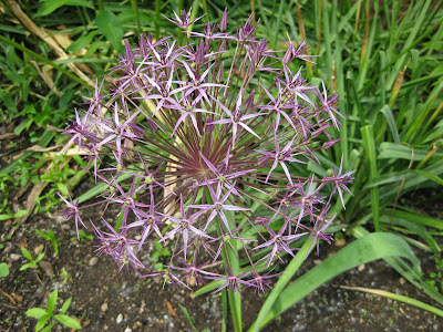 It was brutally hot and muggy today. We had some ladies working over in our vegetable collection this morning and Mary J. came back to do some more weeding. Donna worked on purslane too. Everyone (Marv, Marianne, Terry, Janice, Larry, Jerry) had various tasks that included watering or fertilizing. Terry planted a couple items but our intent was to keep things wet and to tidy up here and there. We'll work on more planting tomorrow and Friday if the weather allows. Larry and Bill cut down, diced up and hauled off three small trees that needed removal. Dr. Gredler mowed and worked on some small projects. It was a productive day despite the oppressive heat. I was able to do two more backpack sprayer loads of Round-up around the gardens and even went thru the woodland walk garden very slowly to target an influx of nasty weeds between our "desireables." There is a chance of rain tonite which would be great although we never count on it and continue to water based on immediate needs, not possibilities...Nice shot of 'King Tut' papyrus (Cyperus papyrus 'King Tut') in a container on our koi pond patio (note the pergola in the distance). I sure like this centerpiece in larger containers. This is three of them crammed together in the center. They should get well over 7' tall this summer and of course are seasonals.