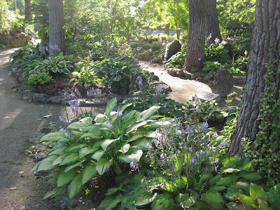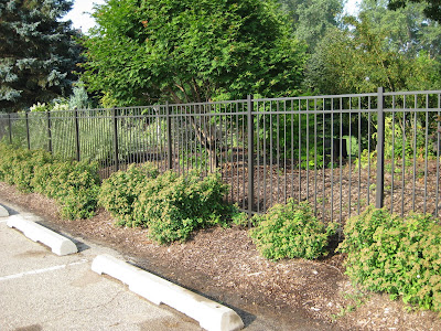 Lilium) below in our English cottage garden. This is an O-T hybrid or essentially a cross between an Oriental lily and a trumpet lily. The benefit is a nice height (48"), later bloom time but wonderful color range and engaging scent! These really perfume the entry in to the garden and we'll continue to plant more lilies over the upcoming years. Nice shot at the bottom of our "fence offensive". The guys (mainly Dick H, Dick P, John and Rollie) have been going gangbusters on installing this fancy new fence around the periphery of the garden. It lends a professional touch, will help direct entry traffic (away from hopping over, thru or under the fence as they have been doing) and might slow the deer down as they size up a jump. We'll see. Great progress though...