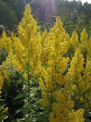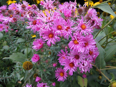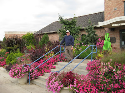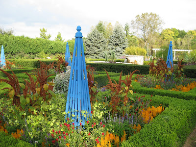 Today is the last "official" day of the plant sale although we'll repeat history and offer three clearance days (15% off everything) starting tomorrow. The weekend was a bit slow and of course the Green Bay Packer game has affected our attendance today. Overall, this was one of our best sales for weather and organization (thanks to Marianne). I think we learn something new each year and will continue to "fine tune" this event. Rose and Urban came in today to work on repainting a sign while Bill was nice to stop by and do a quick round thru the gardens to check water features and debris issues. Despite cooler temperatures looming as we approach fall (officially Tuesday!), the coleus (Solenostemon scutellarioides) are looking great. One of my favorites ('Henna') can be seen below. My drive thru the gardens was nice this morning and the contributions of our volunteers are evident everywhere.