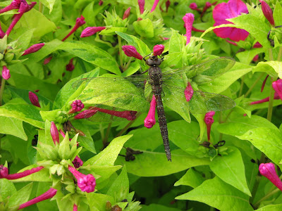 Our volunteer cookout went well last night with over 120 attendees. The weather was perfect and the food was great. I think everyone had a good time and our director Dave, Mike and I all said a couple of words. We are so fortunate to have so many committed volunteers and the future of the garden will always be tied to this special group of generous people. Marianne counted out our plant sale this morning and we're happy that we made it thru the event and did fairly well with income. We'll see how the numbers look but we sure moved out a lot of plants. The Grumpies took down the tents today and hauled some leftover mums up the visitors center to sell them from the gift shop. Surplus bulbs will continue to be sold as well and we'll deal with the remainder of the leftovers. I was at a retreat all morning and am out of touch with all the "happenings" this morning but it looks like the Grumpies kept busy with fence installation, plant sale take down, etc. Jumbo Jim is here with RECAPPERS collecting leaves and Marilyn, Suzy and Glenna accomplished some much-needed weeding in the parking lot. Little Jerry and Janice have kept busy and we have some high school kids taking price labels out of the remainder of our plants. Another productive day although looming showers will make this a wet weekend. Please enjoy more of Santos' photography below. He's good catching shots of hummingbirds too!