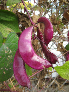 this weekend! Marianne took a well-deserved day off from the plant sale although she was in this morning to make sure everything started up ok. Larry ran irrigation, worked on mower repairs and kept busy with various brush fires. Little Jerry mowed and spent the rest of the day pruning and tidying up in the Japanese garden. Janice helped with the plant sale but was able to go out and water as well as plant some perennials in the woodland walk garden. Kay helped Dr. Yahr plant more perennials in the wishing well garden and then shifted to work with Barb with more weeding and ugly annual removal. Patti and Sally, our newest garden volunteers, did a "wander, weed and tidy" thru the gardens and have impressed me with their attention to detail. They are not novice gardeners! Dr. Gredler and Vern worked on a couple projects and we had another great group of plant sale volunteers (Mary, Sally, Tammy, Virginia, Gary, Nancy, Laurie, Maggie, Heather, Ron, Joe and Rose). The shot to the right is of the beans of the hyacinth bean (