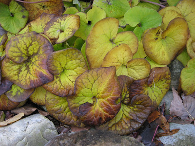 Asarum canadense) below, have their own beauty. Note the water urn (Japanese garden) at the bottom with various leaves and plenty of visual appeal. Happy Halloween!