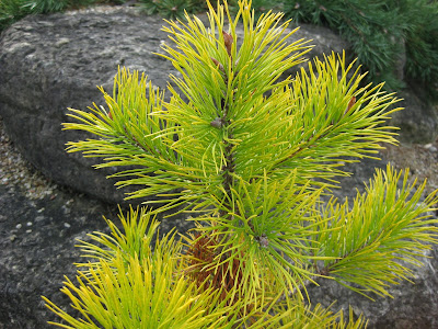 arundinacea 'Skyracer'), the bright needles of the golden lodgepole pine (