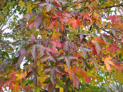 Liquidambar styraciflua) that really catches the eye as it peaks as most other trees have finished dropping their leaves.
