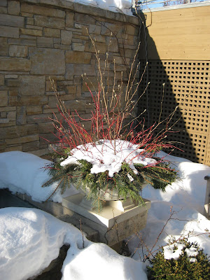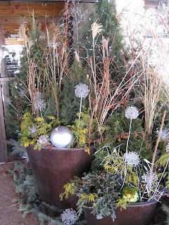 t above at Olbrich Botanical Gardens (Madison, WI) of their pond with concentric circles of snow. This reminded me of the "dry sea" on our Japanese garden. I did get my horticultural "fix" with a family visit to Olbrich's conservatory and a brisk, arctic tour. They do a great job with their winter containers as seen throughout this blog. Note the silver, spray-painted alliums (to the left) used as ornamentation! Neat. I'm still not convinced that we have the winter traffic that would make winter containers worth the time. Our Holiday Lights Show takes up so much of the late