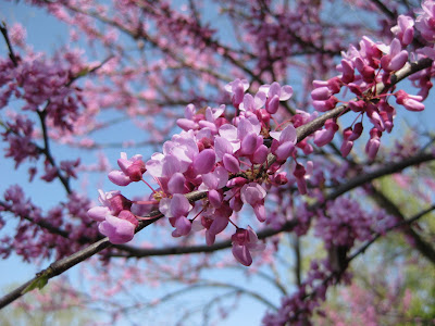 Cercis canadensis) are looking nice out in the gardens and will peak this weekend. The specimen above is one of our best at 25' tall and is located in the Japanese garden (all three photos). The flowers are exquisite when viewed up close and we also have the weeping form, white-blooming v