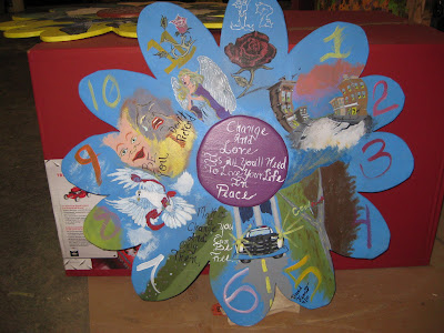 Aceriphyllum rossii 'Karasuba'). This Asian woodland plant is known for its maple shaped leaves with hints of crimson (particularly in fall). I've never noticed it blooming until today and figure I was lucky to catch the blooms early. As primarily a foliage plant, this zone 4 perennial is top notch. There are some other varieties out there too. We've received 20 of our 27 daisies for the "Petal Thru The Garden" art project. Below is a neat one brought in yesterday by one of our RECAPPERS. He is very talented and these shots are the front and back of that daisy respectively.