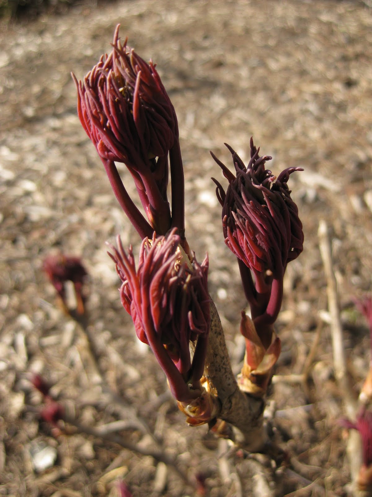 n the woodland walk garden and fern & moss garden (both partly shaded situations). The tree peonies (Paeonia suffruticosa) are foliating very quickly and are beautiful to observe as they go thru the process of unfurling leaves and blooming in a month or so. While they may look a bit ragged in late summer, the tree peonies are one of the few plants with a very short bloom window that are worth the space (and expense). We probably have 50+ tree peonies out in the gardens and they get bigger and better each year. See below for two other daisy entries. We hope to have the remainder next week so all can be sealed and prepared for positioning and installation out in the gardens.