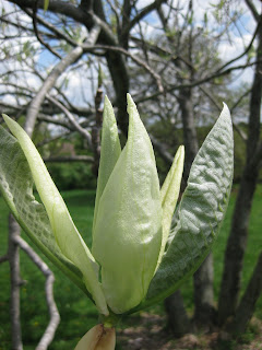 My wife and I both took lots of pictures at the arboretum and I could have spent an entire day there. The weather was sunny and warm. Once we got home this afternoon, I ran to work to check all the plants in our yard for watering. I didn't have to do much as I think someone else (Larry?) may have came in earlier. Busy (but short) week coming up as I prepare for my experience at the Chicago Botanic Garden (Healthcare Garden Design Certificate). To the right is the bloom of the umbrella magnolia (