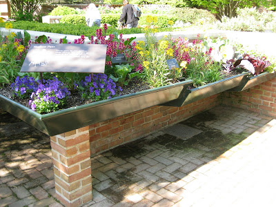 Back to work tomorrow with a focus on our upcoming spring plant sale (May 14-16) although I'm sure Janice and Marianne have it all under control. It will be interesting to see how many calls and emails I'll have to contend with....Regardless, glad to be back with the family. Nice shot below of one of the accessible raised planters in the Enabling Garden. I really got lots of nice ideas and met some nice people.