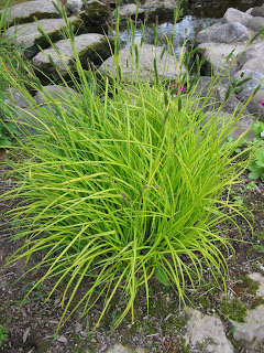 Margaret here and they teamed up to work in the fern & moss garden. They are doing a fabulous job of weeding the beds and clearing off the old mulch in anticipation of a new layer of compost. They have so much fun together and are a great advertisement for the comraderie that our volunteers experience out in the gardens. Bill was a great help today and Dr. Gredler was here for a bit as well. We saw Dr. Yahr, Carrie, Joanne, Dick P., Maury, Gary and Dave over here for a meeting and various people popped by as well. Nice shot to the right of my favorite sedge (
