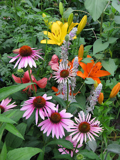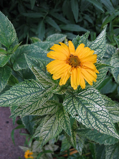 embers (if it's not raining) to help install another 2,000+ annuals. Some shots included here are from my home garden. My wife and I actually shot the same composition (purple coneflower, lily, lamb's ears, and if you look closely, bindweed!). To the right is the variegated false sunflower (