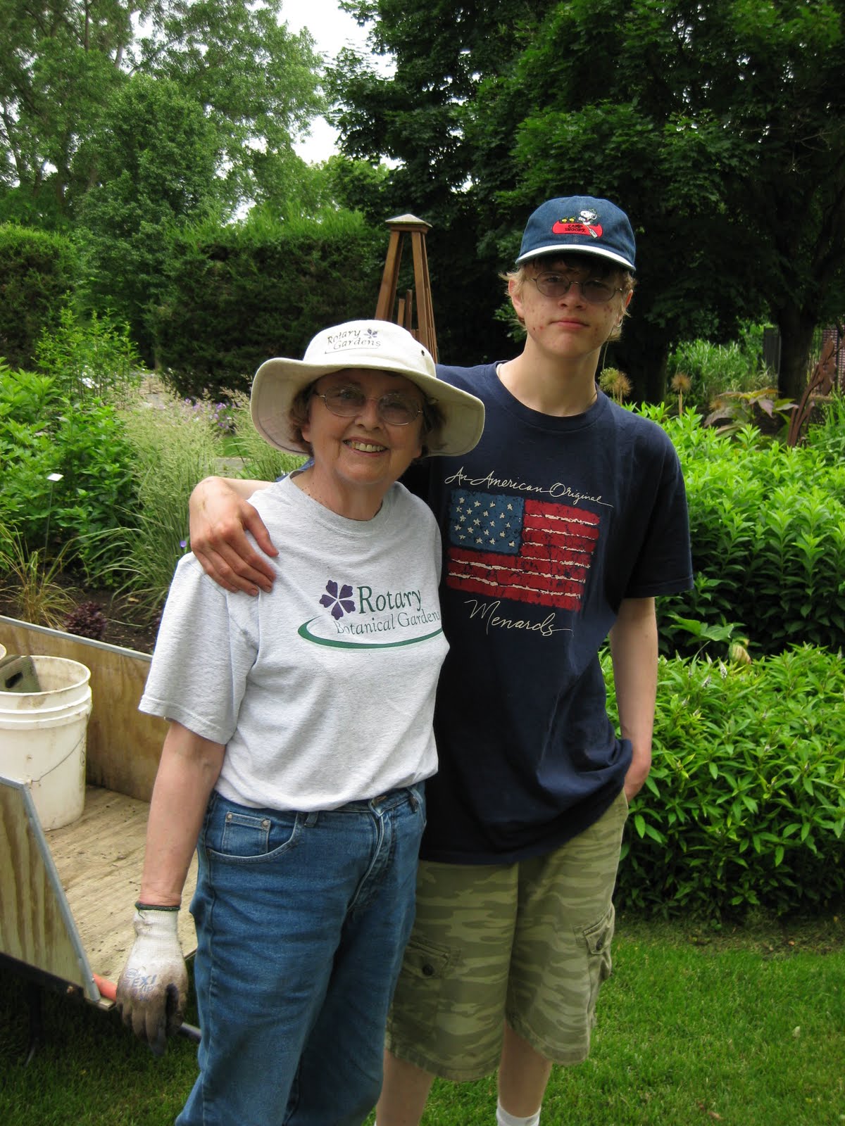 randson, Wes, out planting two areas this morning (see to the right). They were here yesterday too and I mentioned that I hope we see them Monday if they are going to make this a habit, which would be ok with me! Dick H. was here fixing one of our utility carts and worked on a truck as well. His next project is an overhaul of our Cushman utility vehicle which will benefit from his attention. Mary H. was here tidying up her garden area and we also saw Maury, Ray, Urban, Rose, Cindy and Scott. LP Tree Service was here at the gardens today removing a large cottonwood (Populus deltoides) near the pond. This tree needed to be removed prior to the work involved with the new retaining walls that will go along that shoreline in the coming weeks. The tree crew did a nice job and made quick work of that tree and did a nice job cleaning up as well.Coming up on July 16-18 at the Walworth County Fairgrounds (Elkhorn,WI) is the EcoFair360. Their tag line is "Join us for three days of exploration, education and inspiration of all things green." There will be seminars, displays, food and all sorts of neat things going on. I believe I'll be giving a talk at this event ("Energy Efficient Landscape Design", yet to be confirmed) and we hope attendees will be inspired to travel over to see RBG during that weekend. See www.ecofair360.com for more information regarding this exciting event.