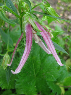 d and planted today. It was a brutal day out there for everyone. Jenny was here and did another nice job playing detective and found (or created) labels for some of our annual clumps out in the garden with no ID. Janice was here to tend to the hostas (slug repellants) and weeded. We were fortunate to have Kay here continuing her work in the shade garden where she is dealing with lots of debris and a haze of aggressive weeds (who would have trembled had they known Kay was heading their way...). Shirley was here to plant with her grandkids and Dr. Gredler continued to mow out in the gardens. Bill was here to shear and tidy too. Jan R. did another weeding circuit in the Scottish garden this morning. We also saw Dr. Yahr, Gary, Mike, Bob, Nancy, Maury and had Ernie here this morning air edging. Another great day but rough to be outside with that heat and humidity. Strong storms tonight they say... Nice shot to the left of 'Pink Octopus' bellflower (
