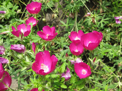 Callirhoe involucrata) blooming nicely on a slope behind our 'Dialogue' sculpture. This is a nice groundcover but it is tough to weed "thru it" as some weeds really can get a foothold and require wet soils to pull them up and thru this colorful mat that blooms June until August.
