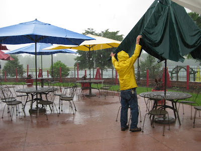 and right). These were so artistic and the entire cut flower display will be open for the public to enjoy tomorrow (Sunday) as well. For the local visitors, this may be a one of a kind opportunity to see such a vast assortment of peonies and I'm sure it inspired many to obtain, plant and enjoy more peonies in their own gardens. The bottom image is of the "overall" winner although I forgot to write down the variety name! It as beautiful and I had to throw some elbows to get close enough for the picture. The judges for this event take it VERY seriously. At the bottom is the end of poor Larry's day! I don't mind the rain but it came down fast. We're good for watering for tomorrow I believe.