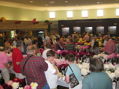 Campanula sp.) in the sunken garden. I'm not sure which species this is as the tag seemed incorrect to me. Pretty though. Kudos to Polly for running a great event for The American Peony Society national conference. There were lots of preparations and accomodations to be made and the event seemed to run very smoothly. The cut flower portion of this event was unbeleviable (see below). I was amazed. The public was invited to enjoy these blossoms and many took advantage of this spectacular display.