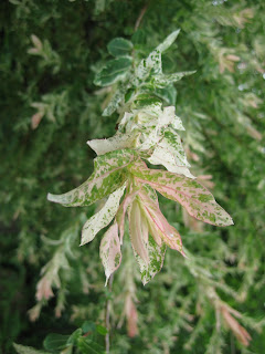 ave done a nice job photographing all the irises this year and we'll organize those later in July for use by the American Iris Society, that would like to put them in their huge database that will have over 80,000 images of irises (including ours!). We'll also use the pictures to help sell these irises on August 28th. To the left is the striking foliage of the dappled willow