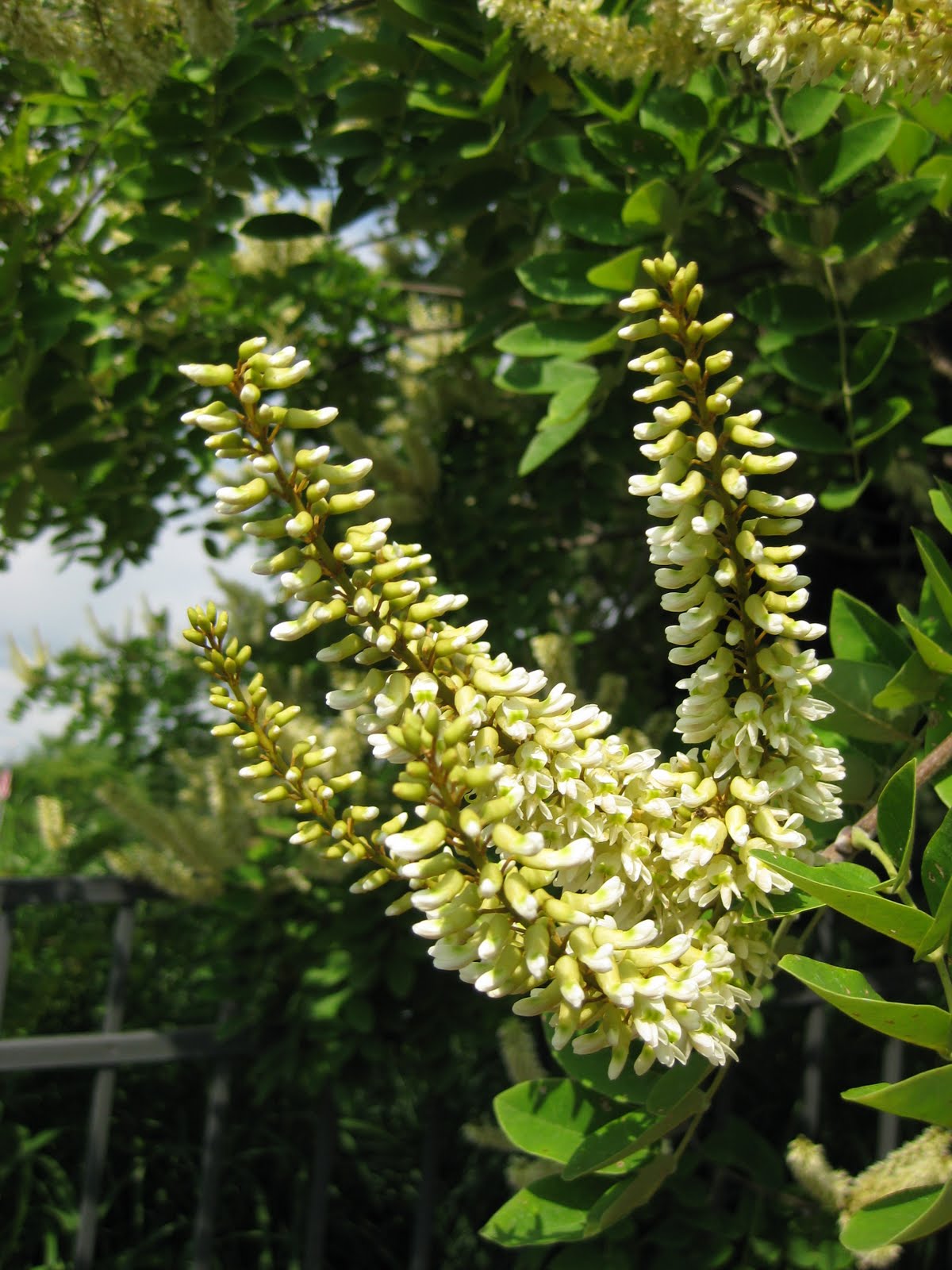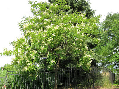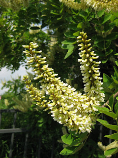 The tree shown below is the Amur maackia (Maackia amurensis) that is finally blooming after seven years out in the ga