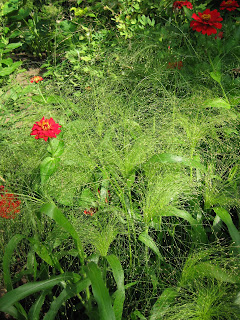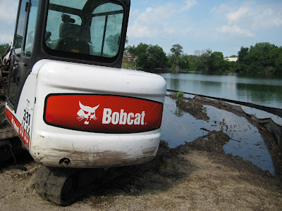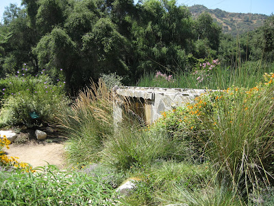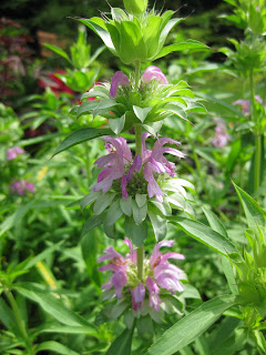 and Shirley on vacation, our weeds are again feeling more confident and are peaking out. Woe upon them when our weeders return! We are looking in to implementing more aggressive volunteer recruitment to really help maintain the gardens beyond the spring planting window. It would be nice to to have an additional dozen sets of hands out in the gardens daily but we haven't reached that level yet but hopefully soon! The shot to the left is the lemon bergamot (Monarda citriodora) that looks great in full sun with those lavender/pink flower whorls (fragrant foliage too). To the right is one of our culvert planters in front of the education center and the hope is that visitors not only enjoy this unorthodox approach but see it for an artistic element as well. Directly below is another shot of our annual beds just east of the Vistor's Center and the bottom photo was taken along our shoreline just west of the alpine garden. This edge will be developed with stabilizing rocks, plantings and other features. Unfortunately, recent rains have flooded the pond and our installers will at least get a feel for what "high water" might constitute. The water to the right (in that bottommost picture) between the silt fence rows was where they were going to install the rocks.Tuesday, July 27, 2010