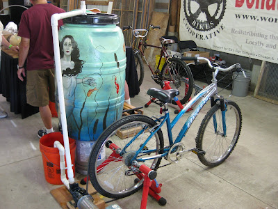 www.EcoFair360.com/) at the Walworth County Fairgrounds (Elkhorn, WI). The event was really neat and was picking up steam as I arrived before it opened to get prepared for my talk. Today was day 1 of 3. There were some schedule issues as I was switched from Sunday to Friday and to make a long story short, I didn't have anyone show up for my talk on "Energy Efficient Landscape Design". However, Jumbo Jim and Julie came to my tent and we walked around and met with some of the vendors. I saw some people I knew from Northwind Perennial Farm, Cobrahead Weeders, and other locations. I hope this event is well received and attended. If you have the time, head over there and check it out as there were vendors and organizations from all over the place. The organizer, Catherine M., did a fine job and my bruised ego will heal. I've learned in the past that the first speaking time slot on the first day of a multiple day event is a tough sell. My therapist will get me thru it though... The image below was taken at the booth, the Working Bikes Initiative (