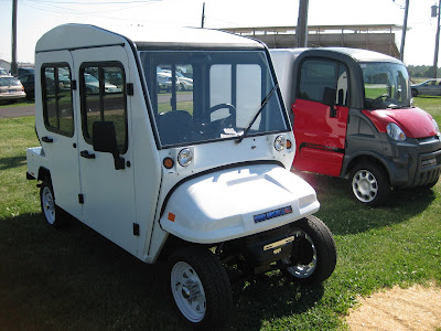 http://www.workingbikes.org/) that collects used bikes and ships them to projects in poorer countries. They are a non-profit and the two gentlemen we talked with were very passionate. The set-up below allows the bike to generate electricity to pump water. They had all sorts of neat arrangements and distribute over 5,000 bikes annually. The picture further down is of some neat electric carts I noticed. Fancy (and probably expensive).