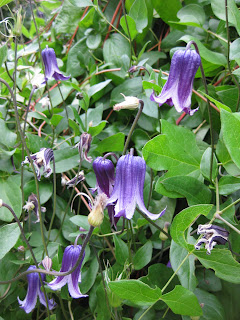 for sale at our August 28th iris sale. The Rock Prairie Master Gardeners will be instrumental in accomplishing the division and facilitating the sale. To the left is my favorite clematis (right now). This is 'Rooguchi' which is covered with these dangling bells thru mid-summer. This shot was taken at Dave W.'s garden and really shows off this floriferous hybrid variety. Look for it out at the garden centers and you will not be disappointed. To the right is a wonderful white astilbe (