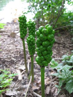 Arum italicum). These berries will turn orange/red and are reminiscent of our native Jack-in-the-pulpit (