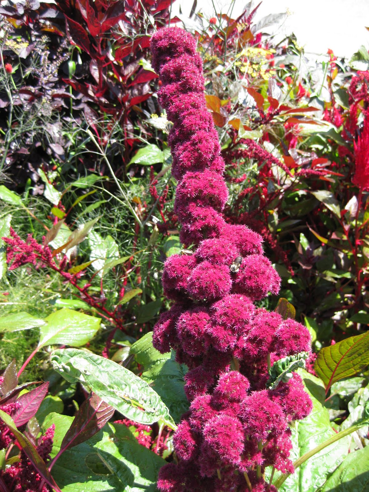 We had a nice sunny day although the mornings still have that cool, touch of "Autumn pending". Above is a shot of our front sign planting which still is holding strong with the maroon/red theme although most of our