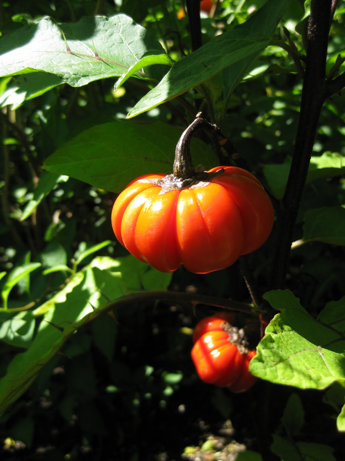 Understandably, most plants are sold on the merits of their flowers or perhaps foliage. Sometimes fall color, ornamental bark or even wildlife potential become factors in considering (and promoting) a plant. I just want to remind everyone that some plants have some cool fruiting structures. For instance, above is the "pumpkin-on-a-stick" (