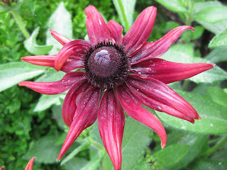 Beta vulgaris) that we use in our ornamental border and in our maroon/red theme. With edible beets (later) and edible foliage, this is a beautiful, yet utilitarian plant for the home garden and container. Speaking of our maroon and red theme, we had more compliments today and even those that don't like the overall color combinations have conceded that it is impressive in scale and texture (I'll take that). Below we have the 'Cherry Brandy' gloriosa daisy (